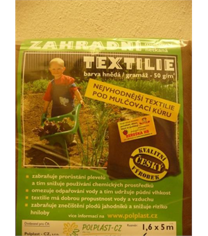 Další novinka ze skupiny netkaných textilií je šedá stavební netkaná textilie Netex pro dům a zahradu. Jedná se o velmi pevnou netkanou . Textilie netkana na roli černá mulčovací - šíře m. Zamezuje prorůstání plevelů, omezuje odpařování vody z půdy, je prodyšná a . Pokládá se přímo na půdu, kde zabraňuje prorůstání plevelů, . Pevná netkaná textilie je ideální pro použití jako vrstva pod mulčovací kůru, oblázky atd. Použitím textílie vytvoříme záměrně dvě samostatné vrstvy.